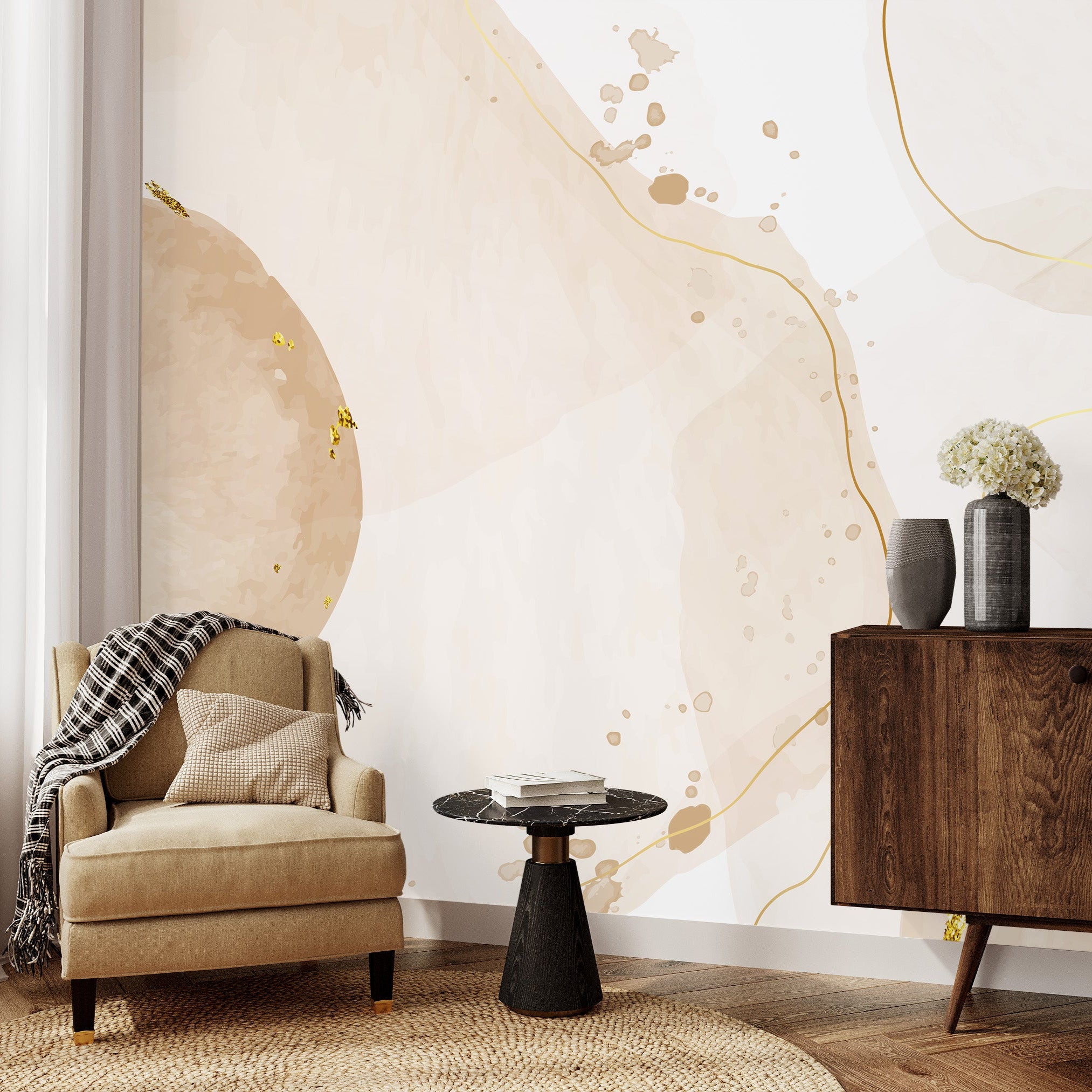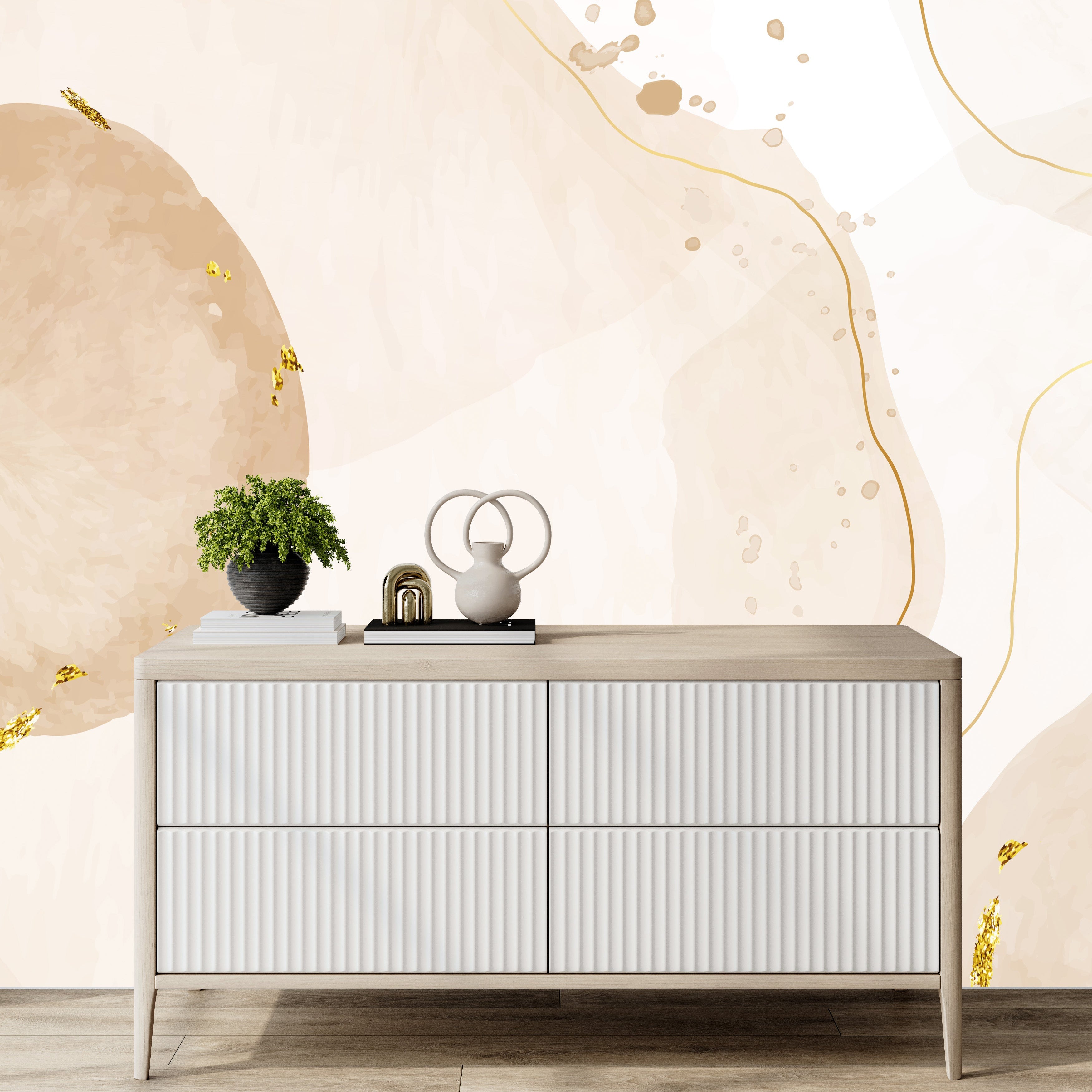 A gentle interplay of pastel washes and shimmering gold, creating an abstract tapestry of subtle textures, light, and movement in a dreamlike, minimalist style