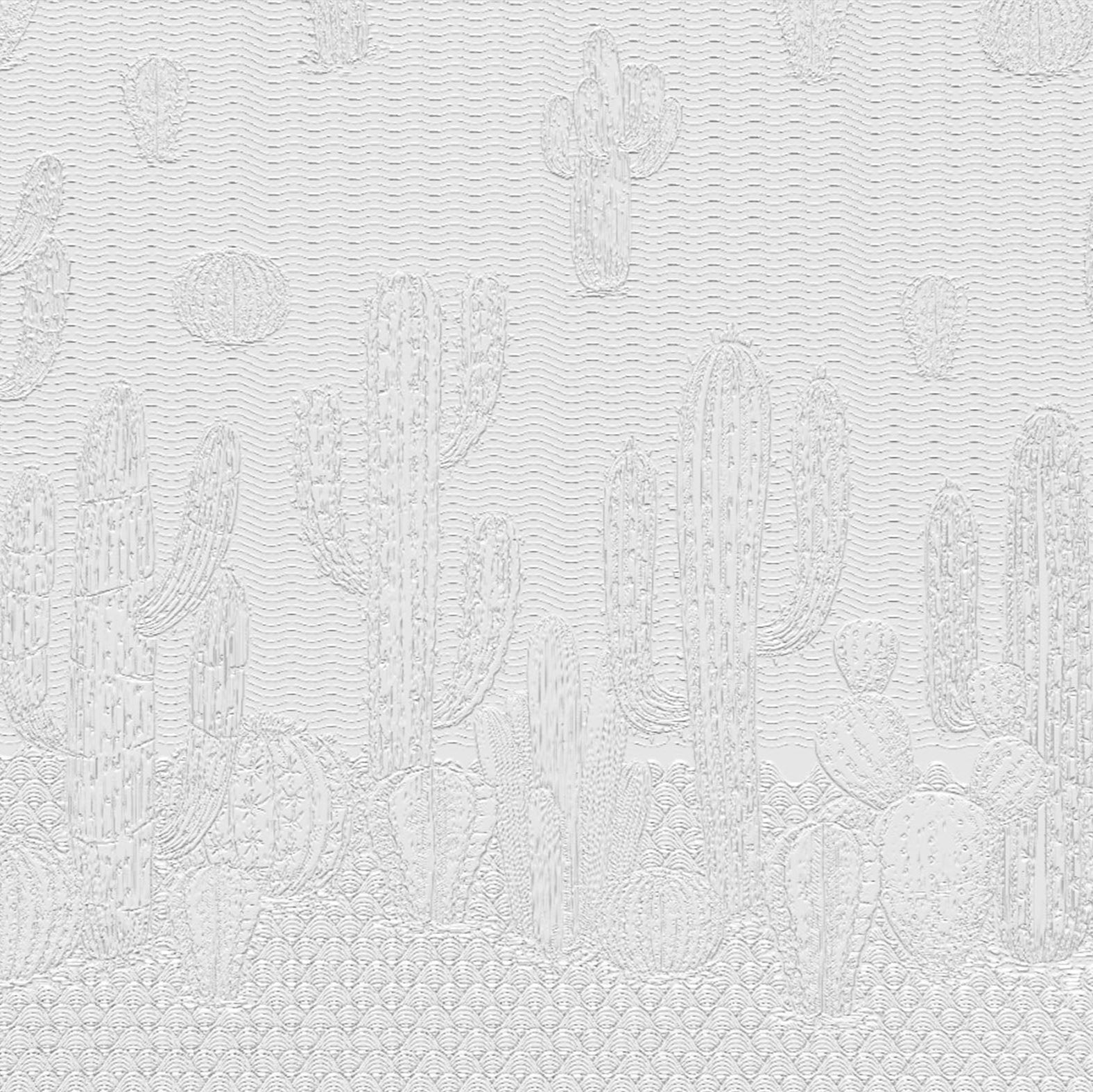 A wallpaper featuring a repeating pattern of cacti and sagebrush creates a sense of the American Southwest in a 3D paintable texture.