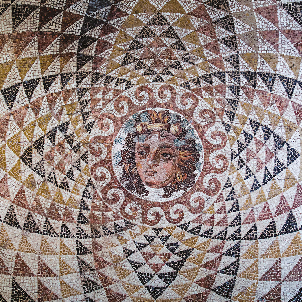 A mesmerizing mural showcasing a stunning mosaic pattern with intricate details and vibrant colors, creating a dramatic and visually striking focal point with 3D texture throughout.