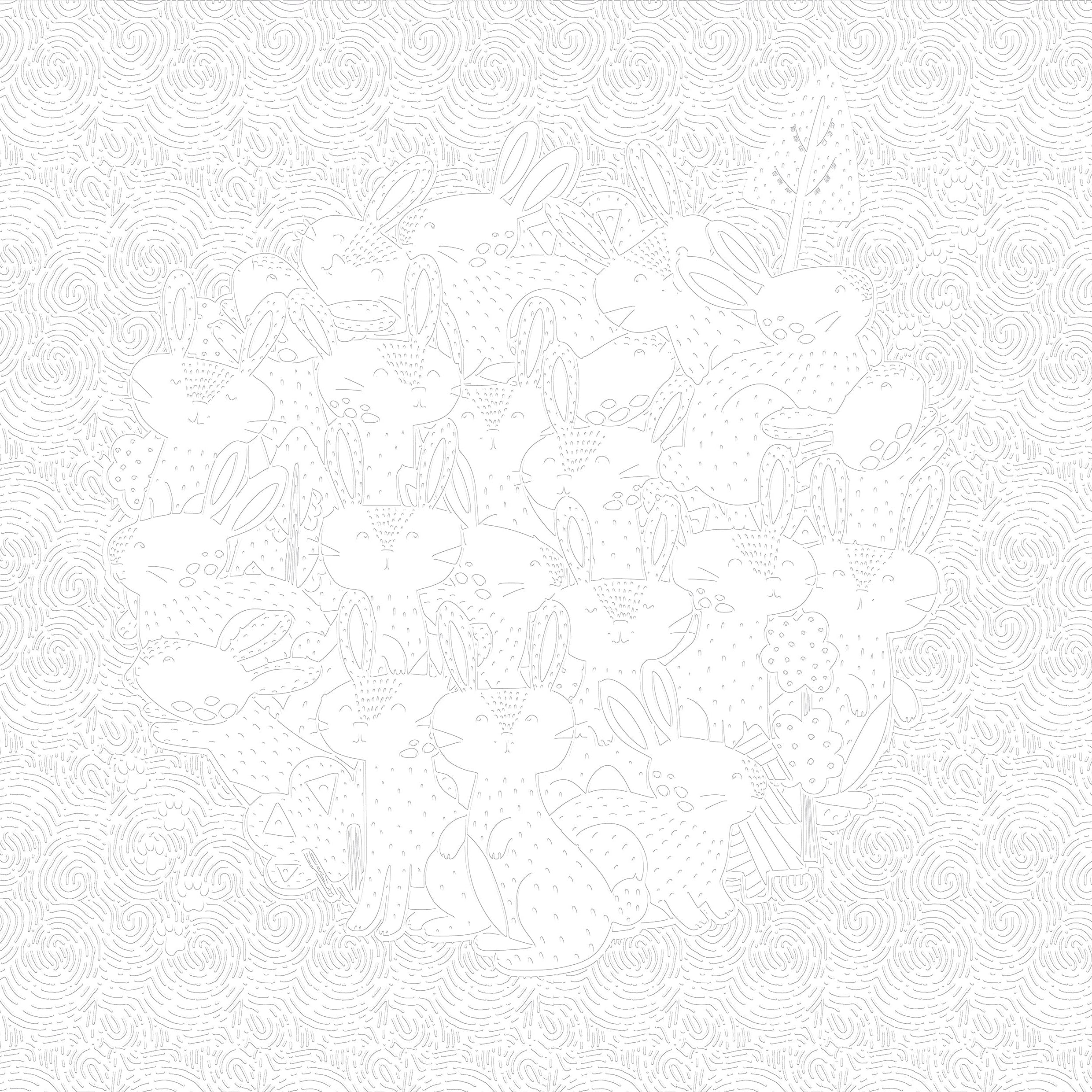 A charming, all-over pattern featuring dozens of cute, embossed rabbits tucked among foliage. Paint any color to create a sweet, 3D textured backdrop for a nursery or child's room.