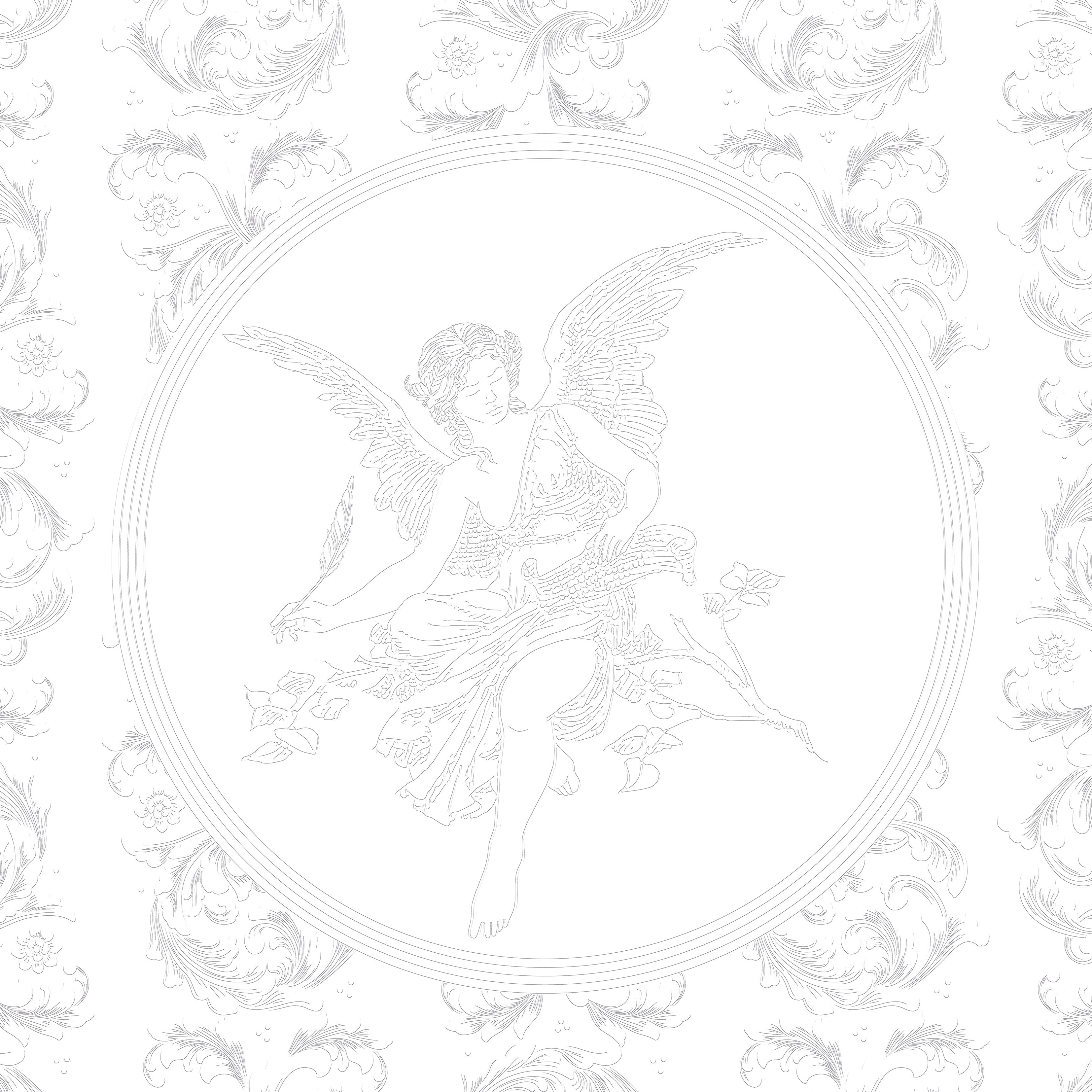 A grand, 3D textural surface featuring a classical angel centerpiece encircled by ornate, dimensional damask flourishes. Ready to accept any color of your choice.