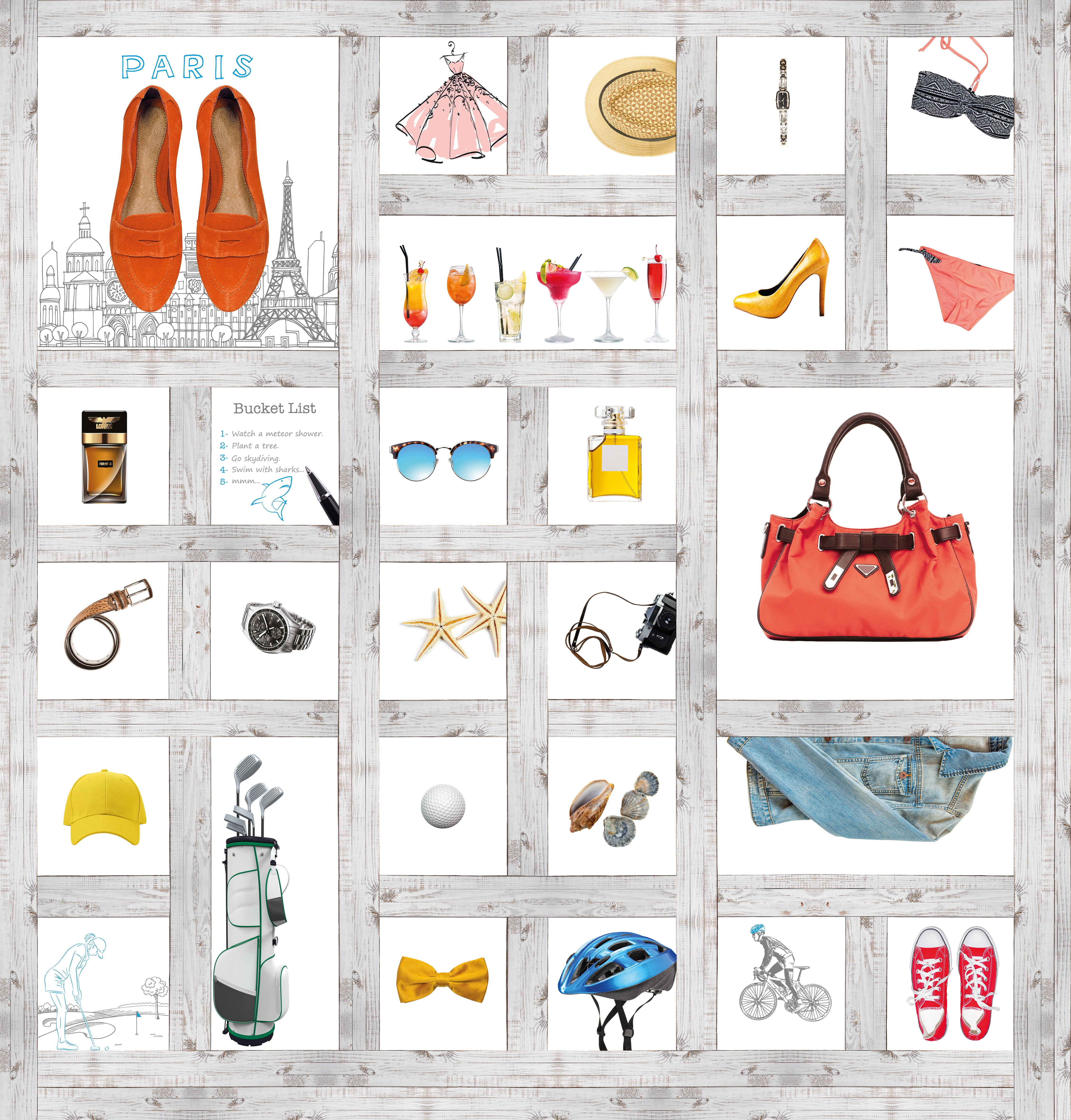 A whimsical mural featuring a collage of fashion illustrations and photographs, perfect for fashion enthusiasts and those who love to dream big with 3D texture throughout.