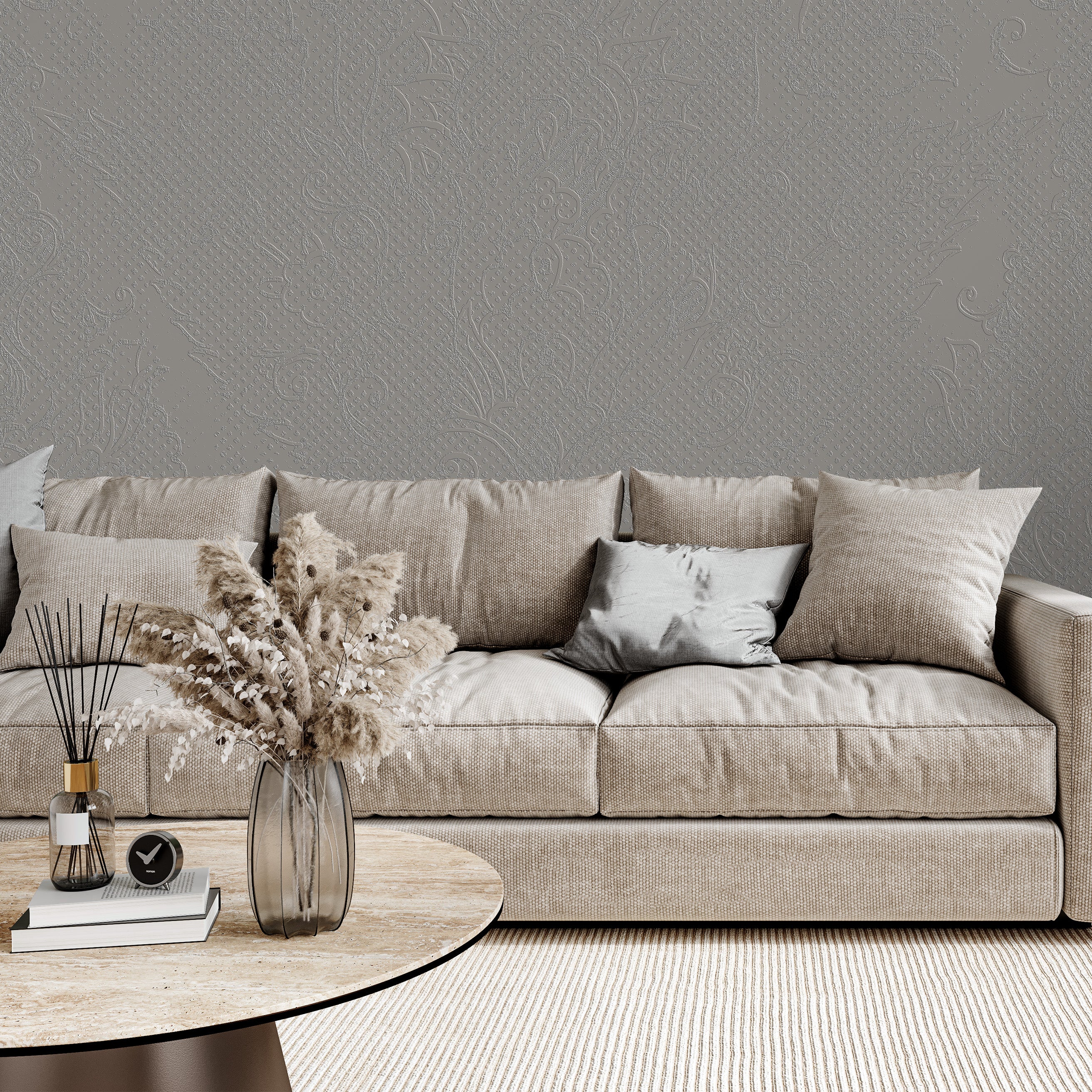 This luxurious mural evokes the richness of antique brocade with its ornate floral design and textured finish in a 3D paintable texture.