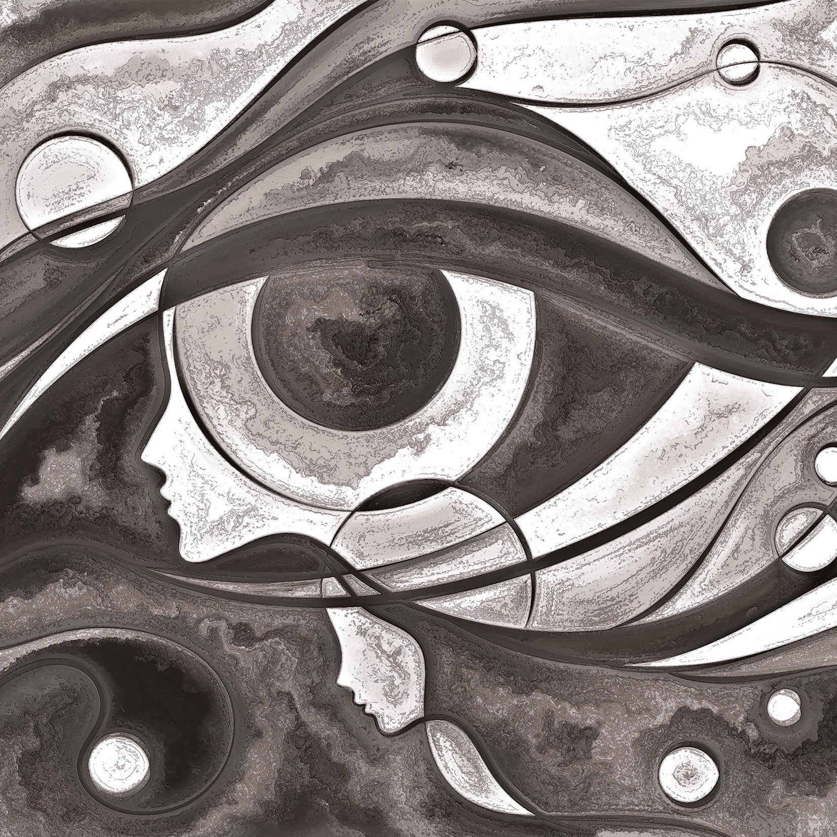 A captivating mural featuring an abstract artwork with a central eye, drawing the viewer in and inviting contemplation with 3D texture throughout.