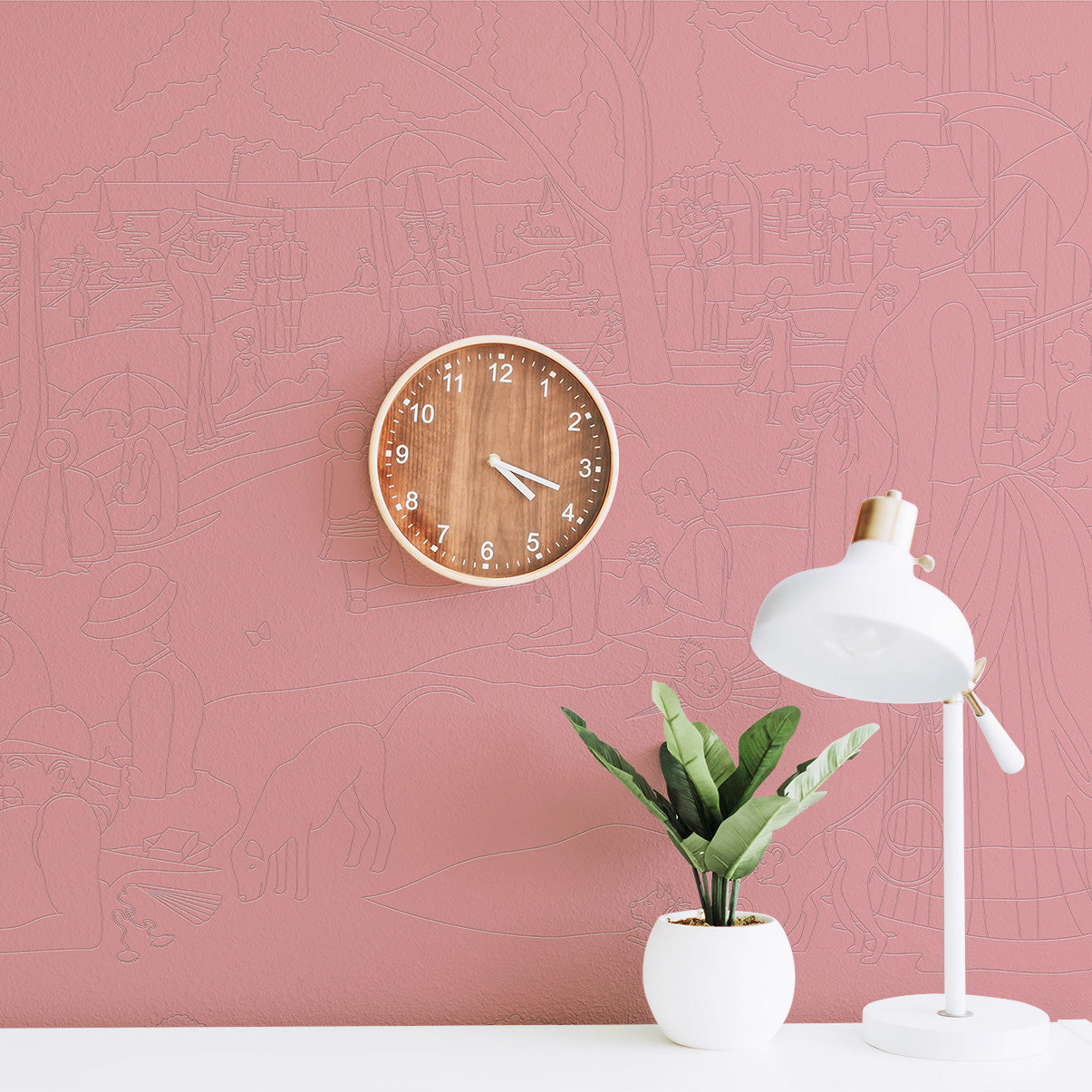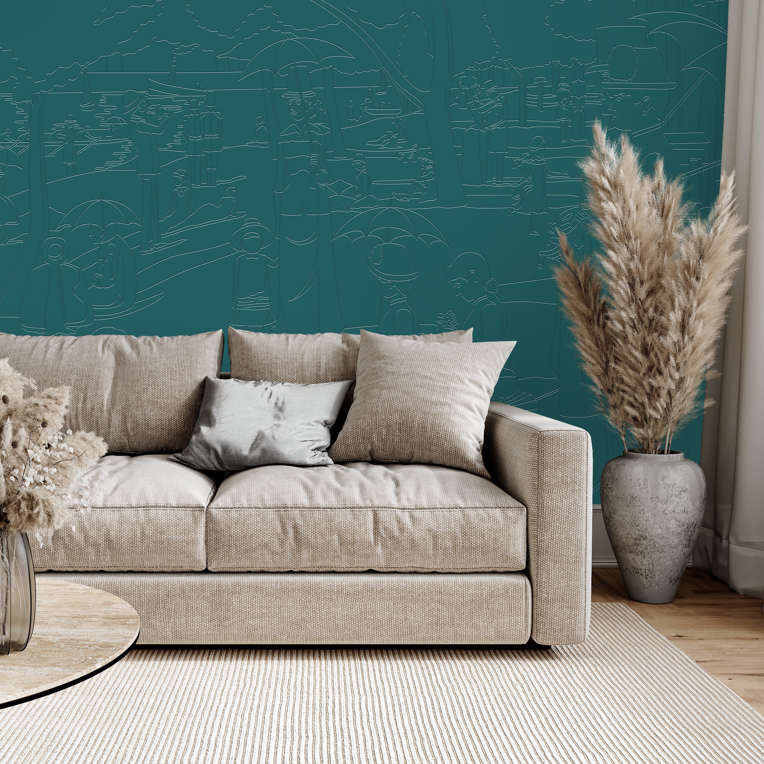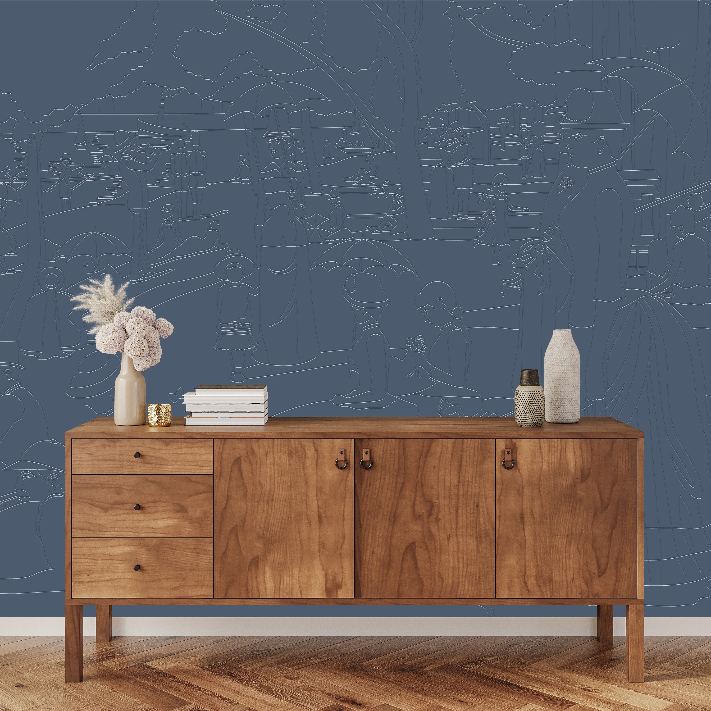 A charming, low-relief wallpaper design capturing a leisurely afternoon in a classic park setting. The 3D texture is perfect for painting to create a soft, antique fresco effect.