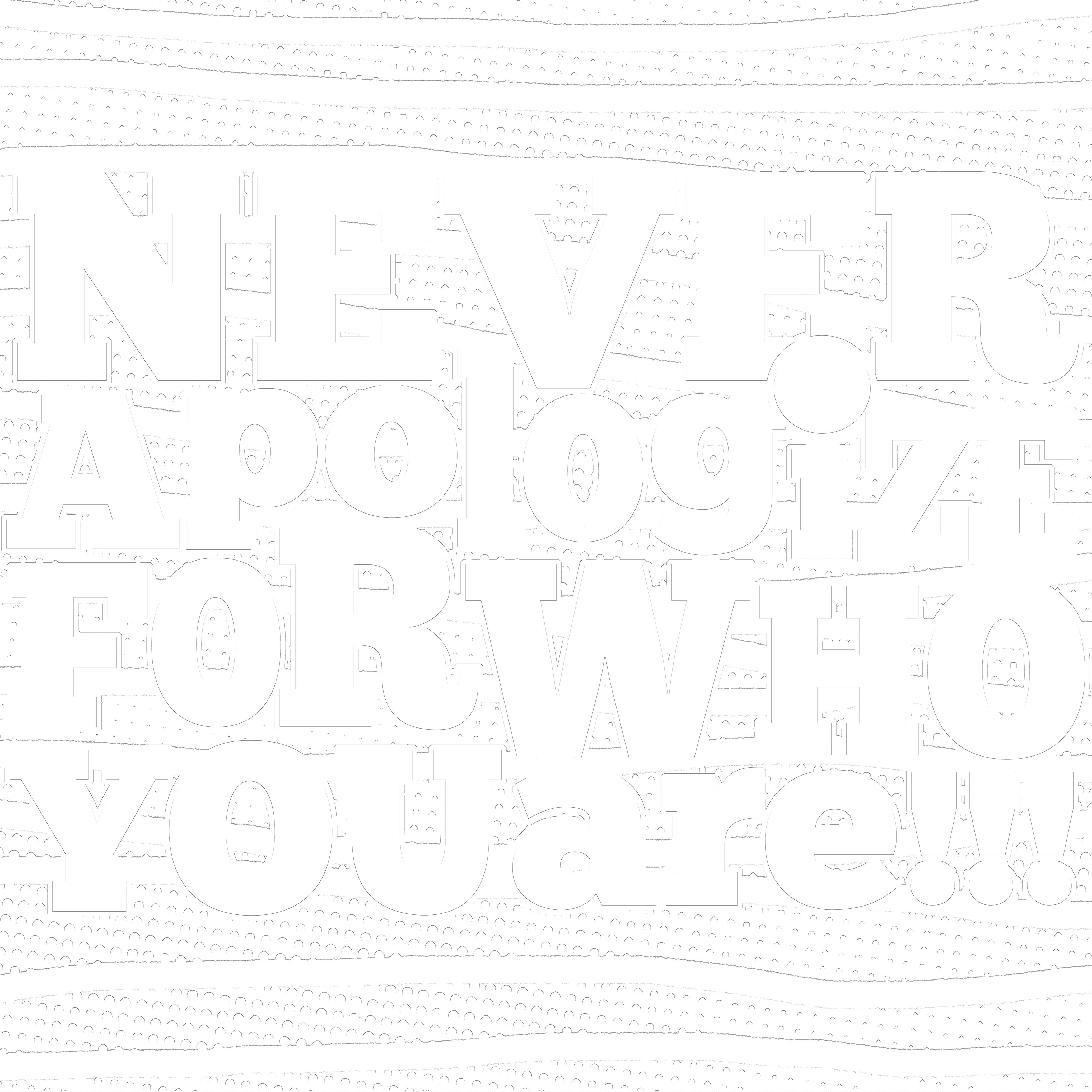 A 3D textured, paintable wall mural featuring the subtle, empowering message: "Never apologize for who you are."