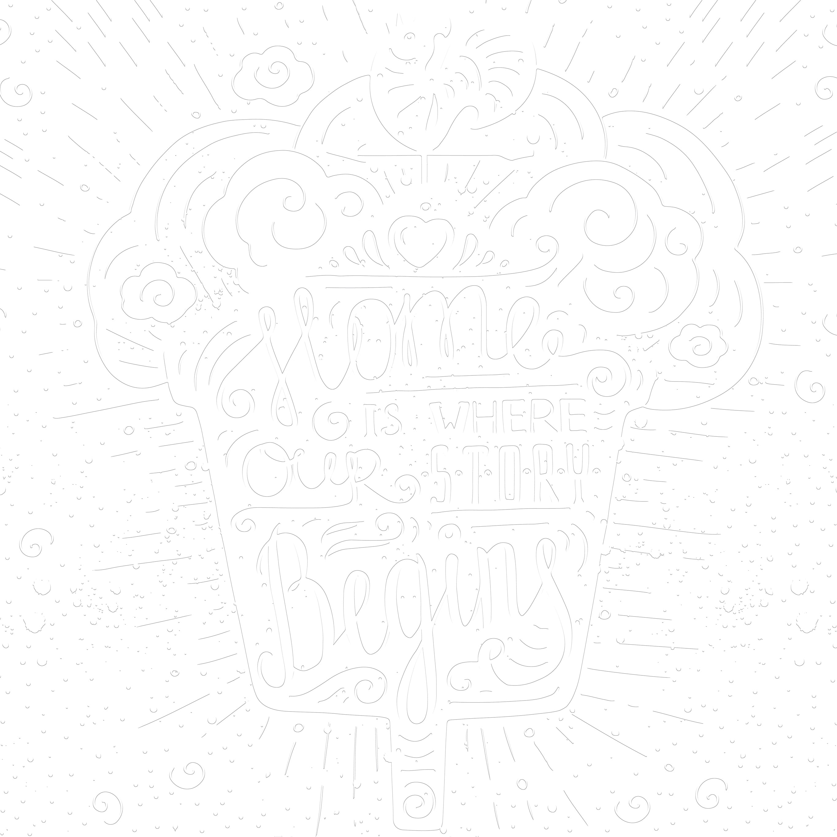 A beautiful 3D relief design featuring the inspiring quote, "Home is where our story begins," framed by a whimsical birdhouse and swirling clouds. Perfect for a personalized nursery or entryway.