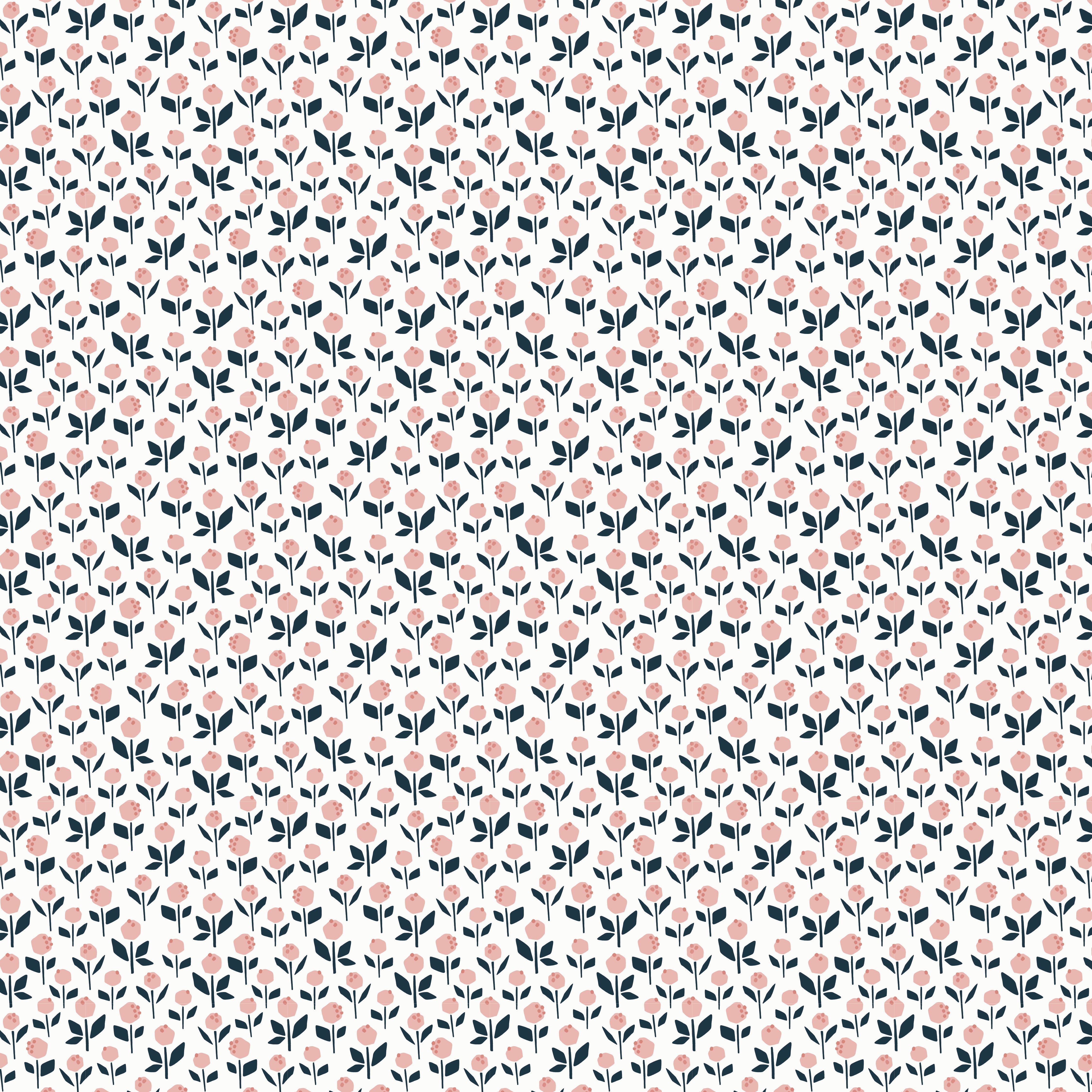 A delicate dance of blush rosebuds and deep green leaves on a crisp ivory background, evoking classic garden romance.