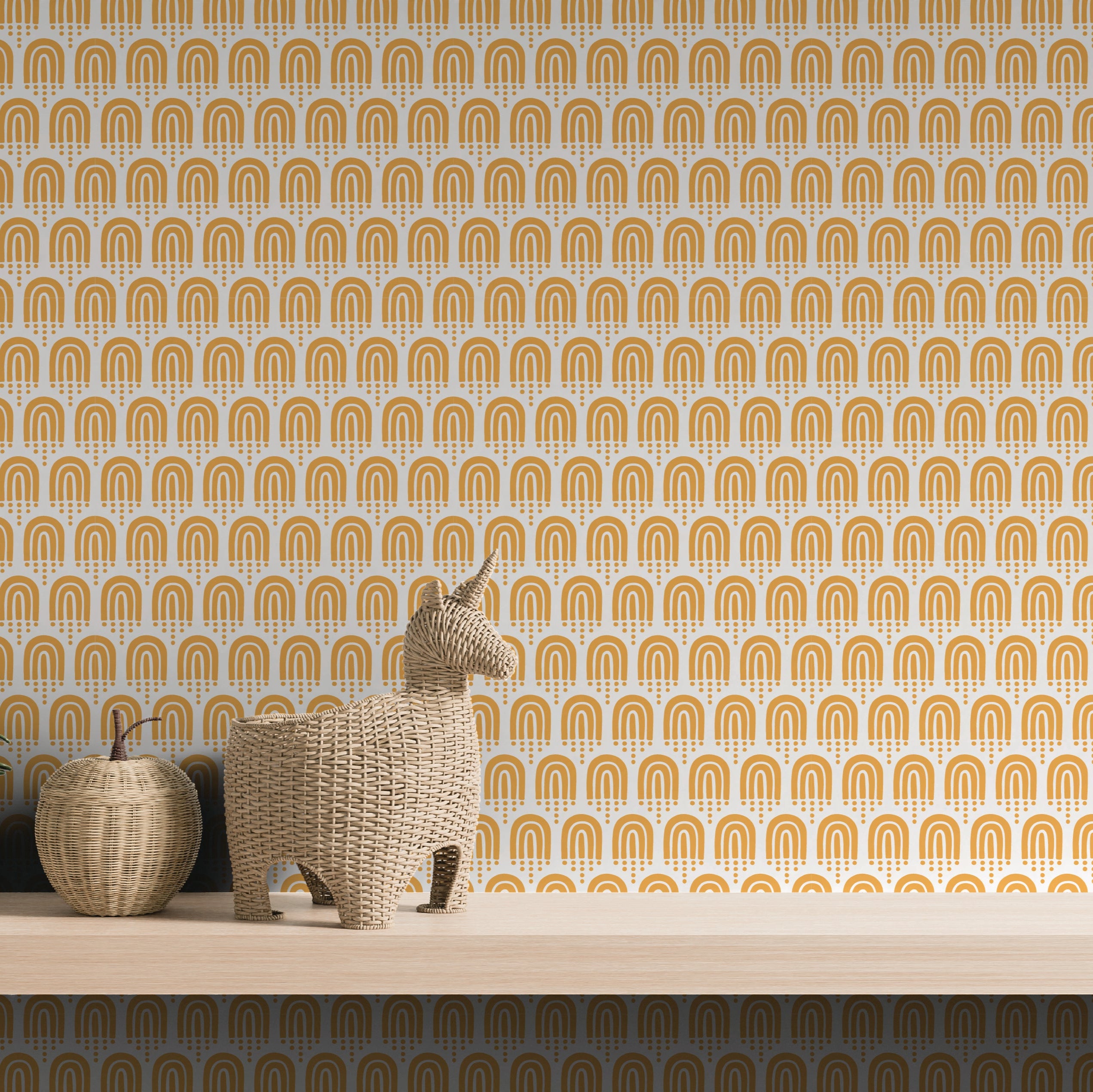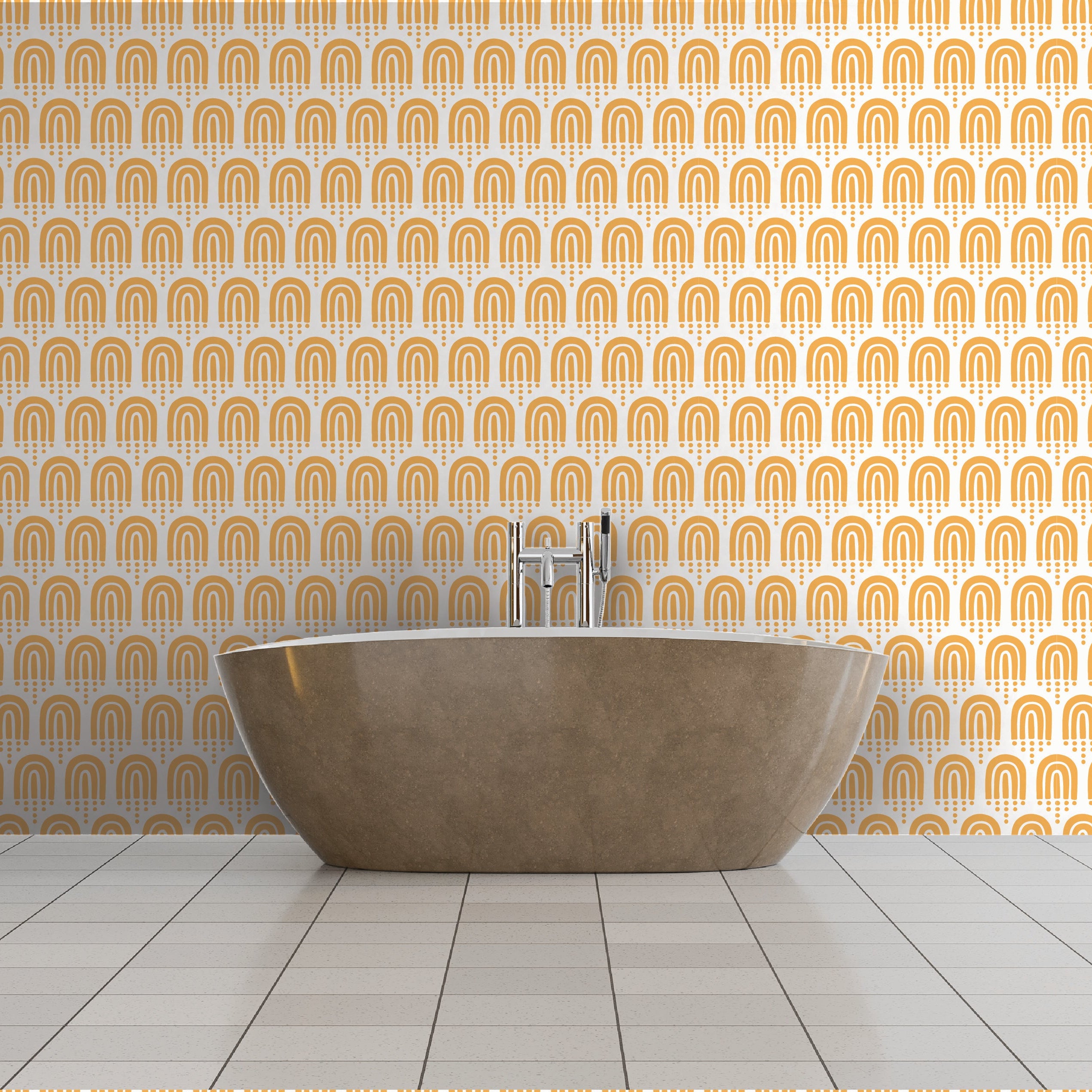 A repeating pattern of delicate arches in warm amber tones, evoking a sense of harmony and modern elegance.
