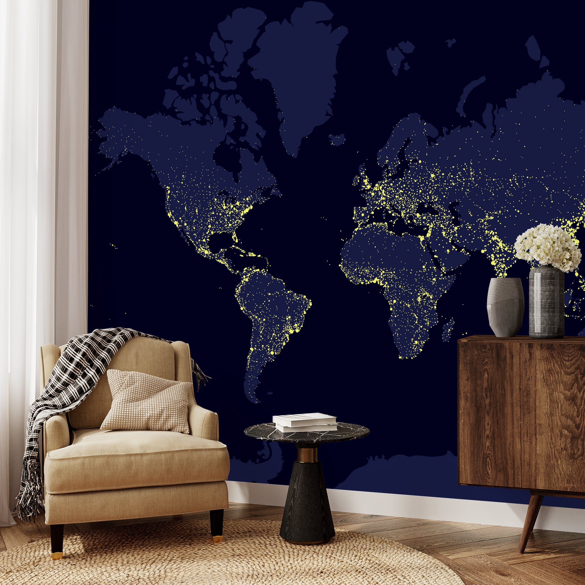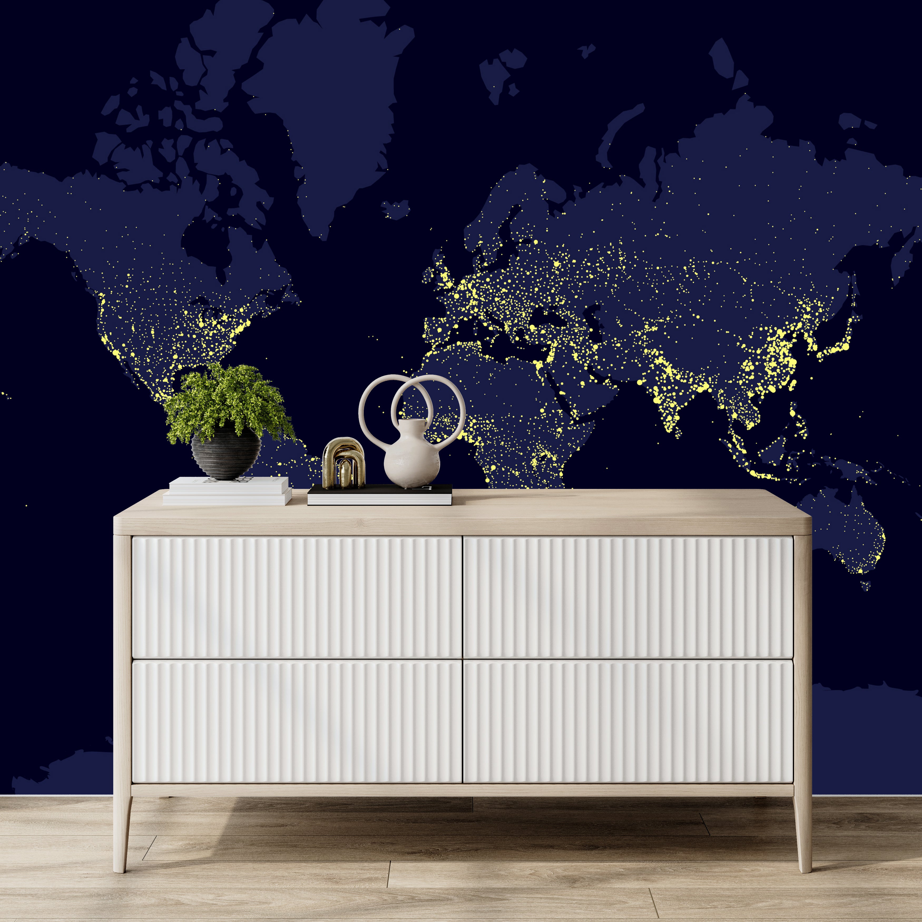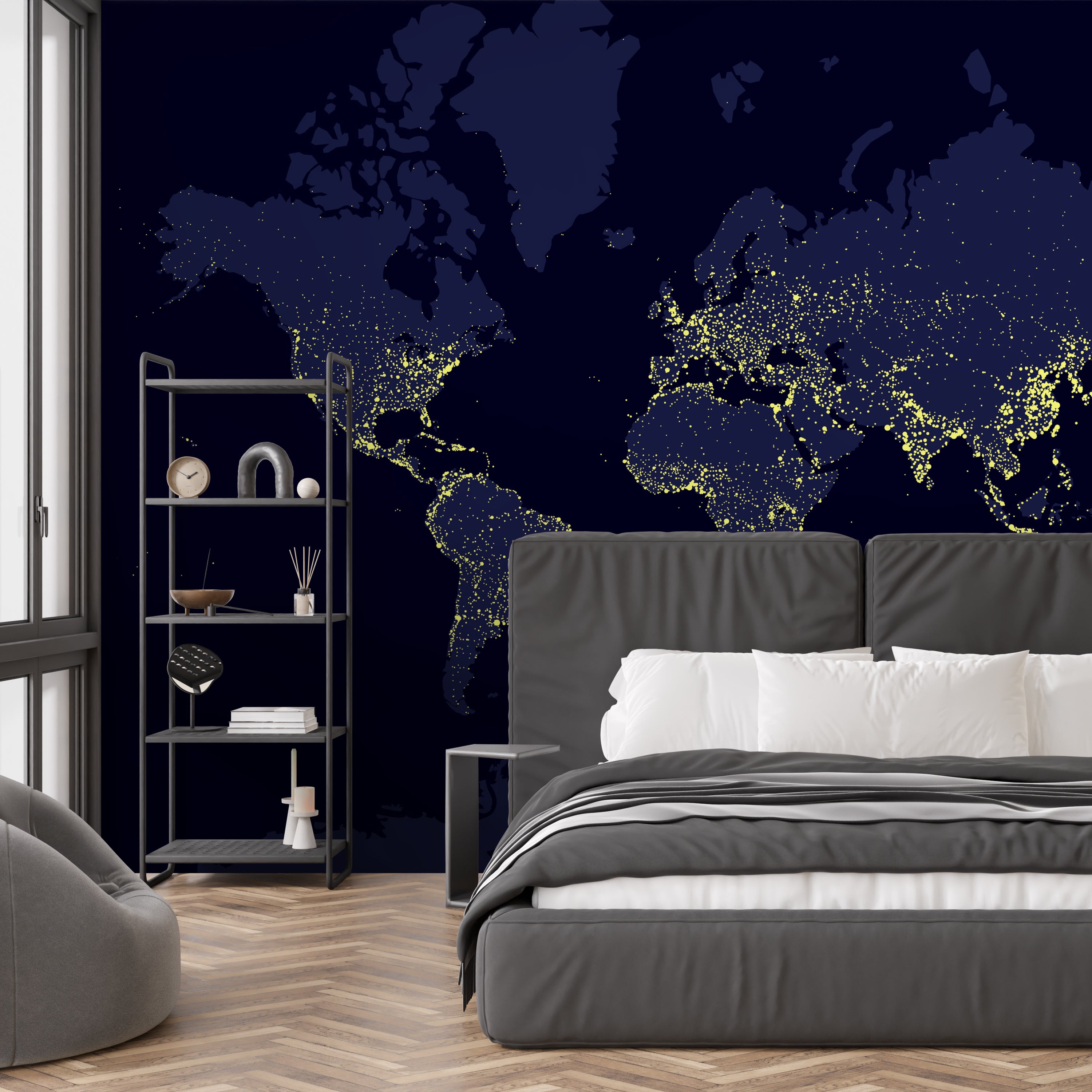 Let your walls glow with the captivating beauty of city lights across the continents. This unique wall mural creates a modern and dynamic atmosphere.
