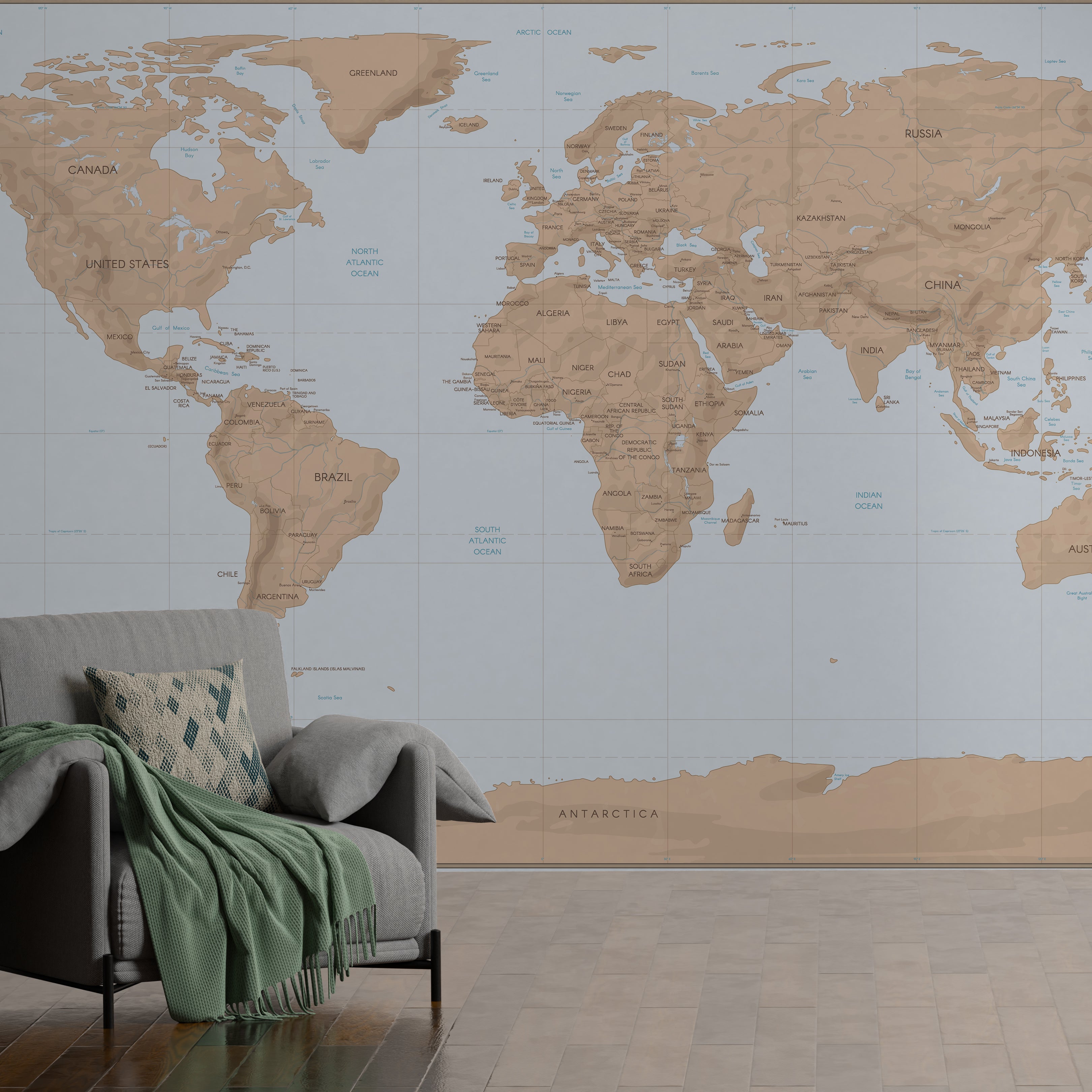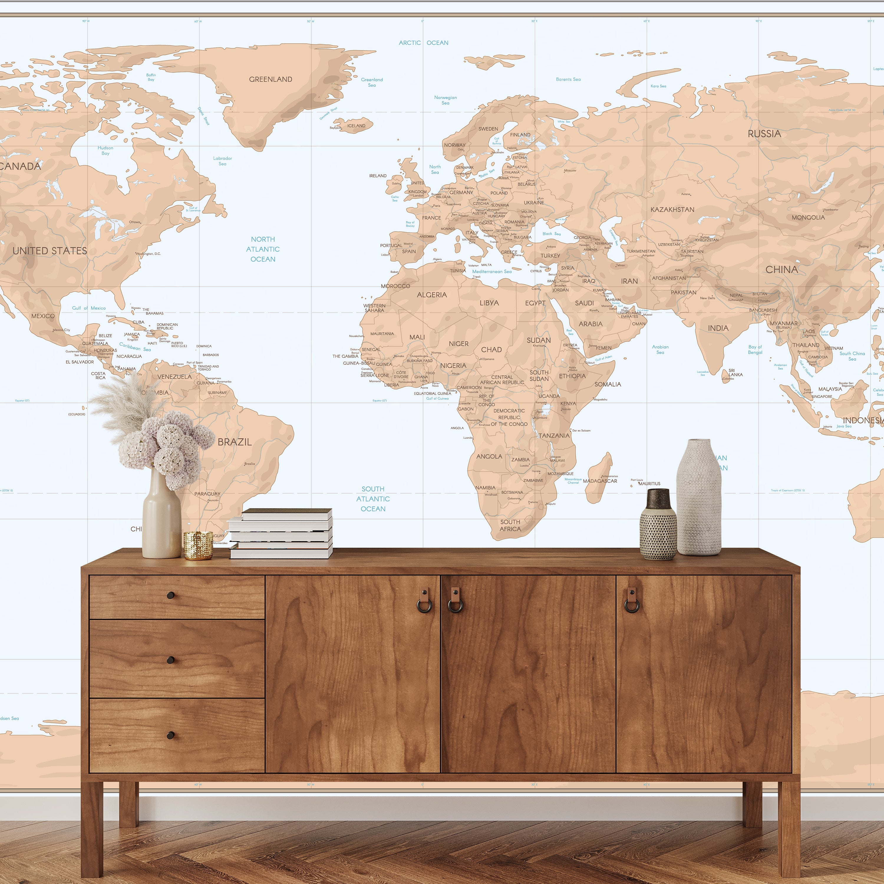 Chart a course through history with this captivatingly aged world map. This wall mural will ignite your inner explorer.