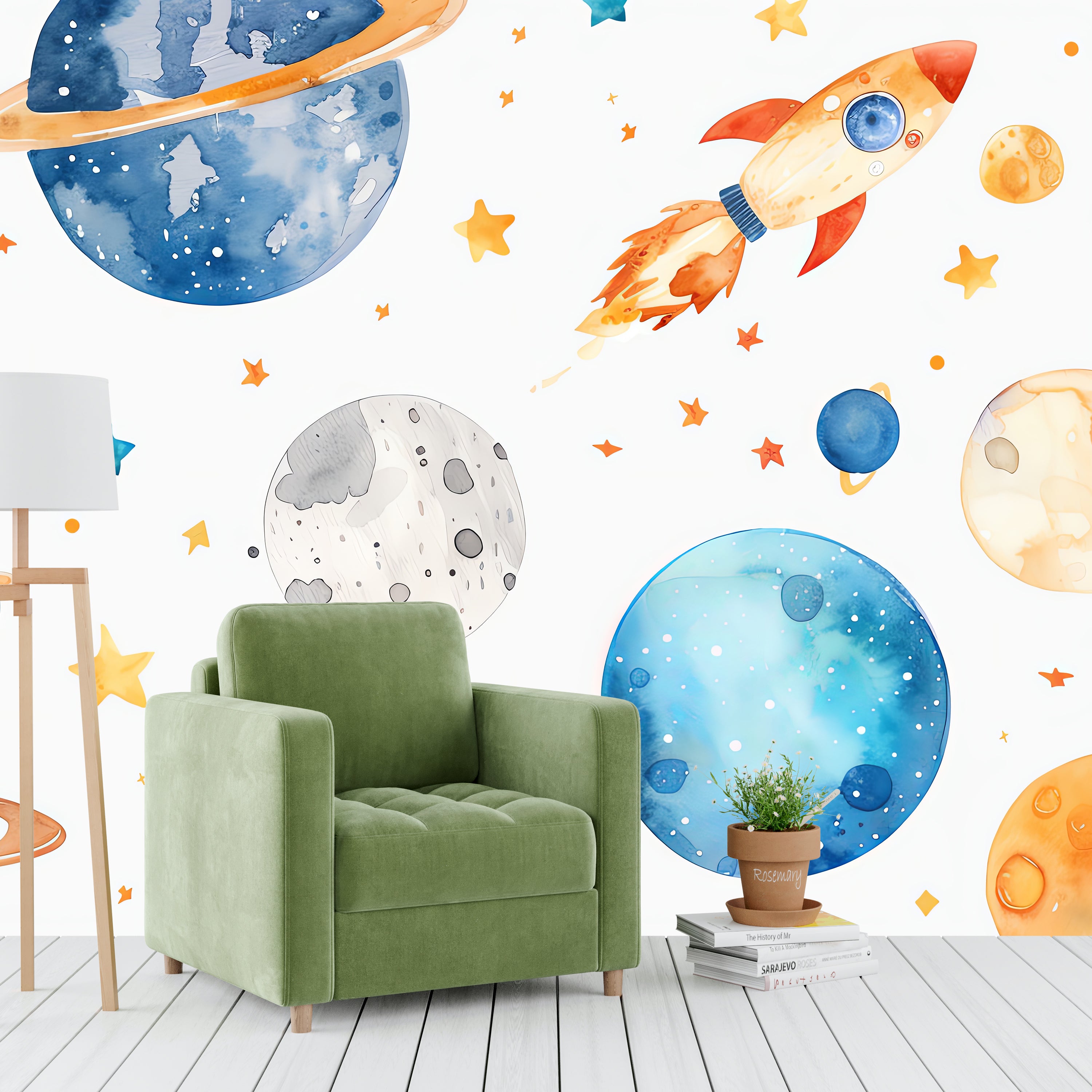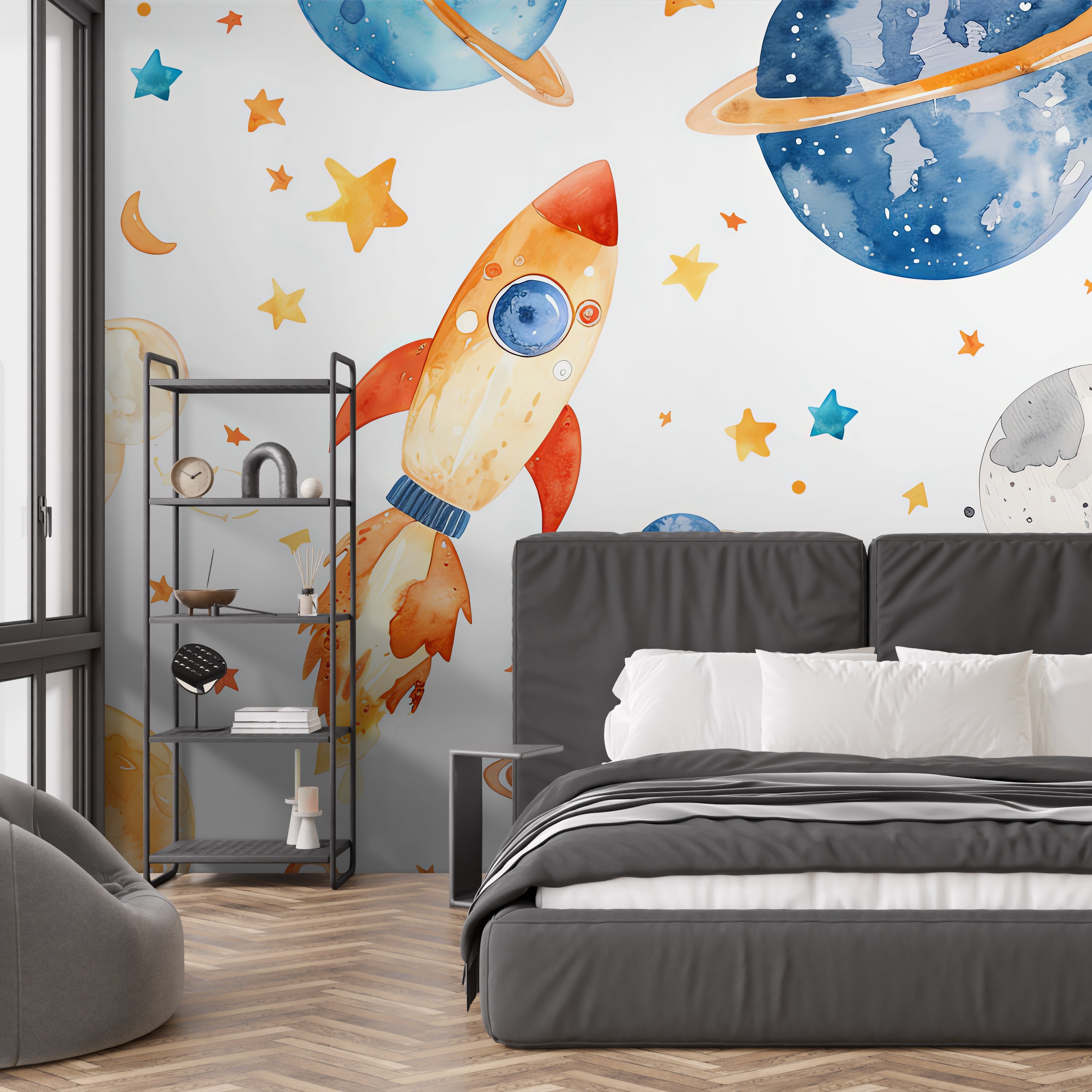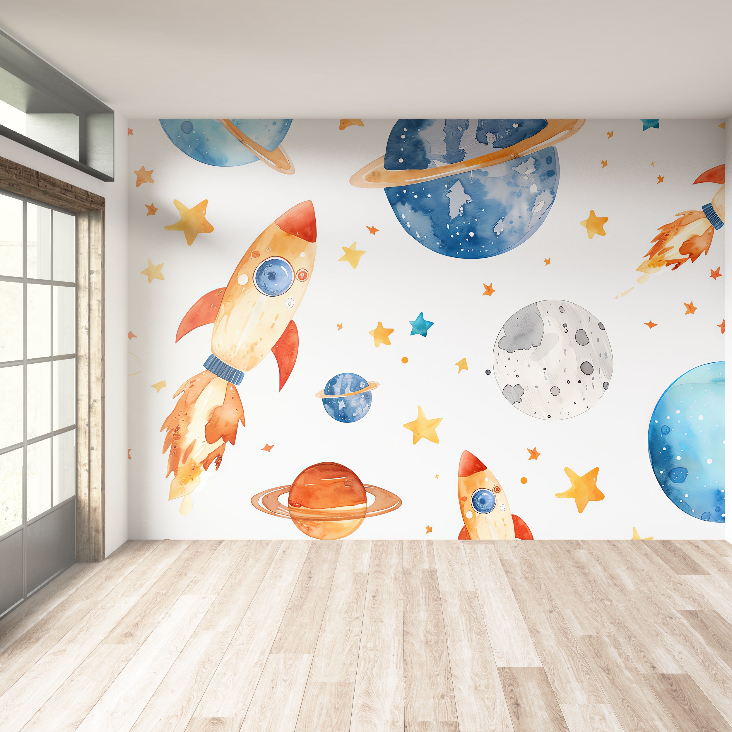 Whimsical Rocket Universe Wallpaper | Eco-Friendly Wallcovering Skip to content